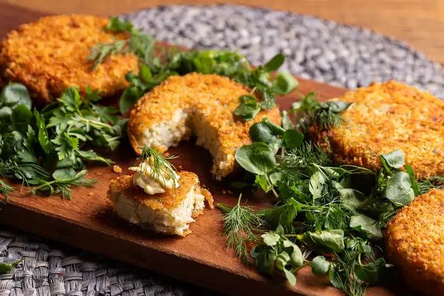 INGREDIENTES 1 colher (sopa) de azeite ½ colher (sopa) de alho 2 colheres (sopa) de cebola picadinha 2 batatas médias cozidas, descascadas e amassadas (+/- 280 g) 1 ovo batido 200 g de bacalhau cozido e desfiado (1 xícara de chá) ¼ xícara (chá) de farinha de rosca (30 g) 1 colher (sopa) de azeite […]