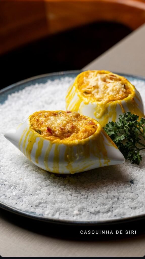 INGREDIENTES ½ kg de carne de siri ½ tomate 1 cebola 5 dentes de alho ½ xícara (chá) de azeite 1 colher (sopa) de azeite de dendê 1 xícara (chá) de leite de coco (aproximadamente 100 ml) 3 ovos Coentro (a gosto) Pimenta-do-reino (a gosto) Sal (a gosto) Farinha de trigo Farinha de rosca Casquinhas […]
